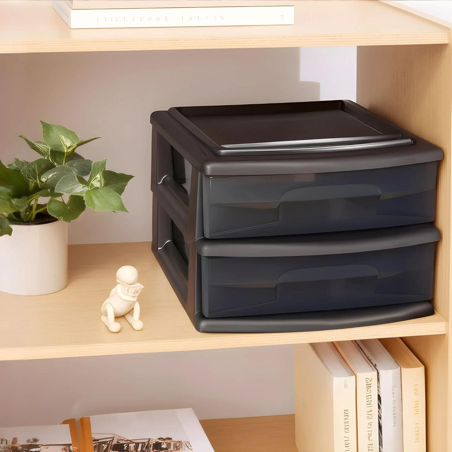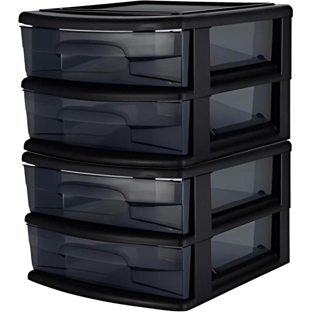 Stay better organized and limit clutter with the help of this 4-drawer plastic storage cart. It is ideally suited for home, office, dorm room, or nursery. Tinted drawers allow contents to be identified while still lightly masking for a level of privacy. Casters are included for easy and convenient mobility. The cabinet’s top features two recessed compartments for quick access to pens, stapler, stationary, and so much more.